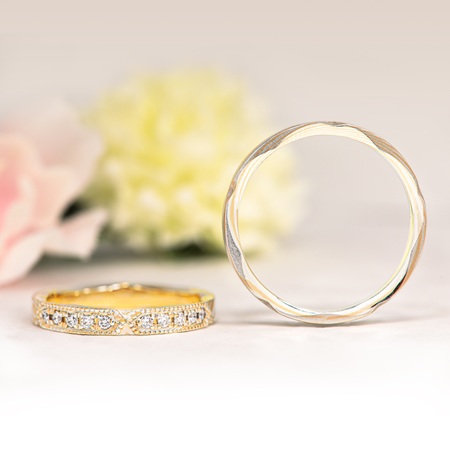 お二人のお好みをかたちにする木目金のご婚約指輪・ご結婚指輪