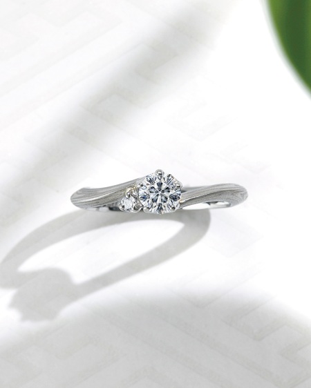 ご婚約指輪は、月明かりに照らされたような輝きと、優雅な流れのある『月桜』