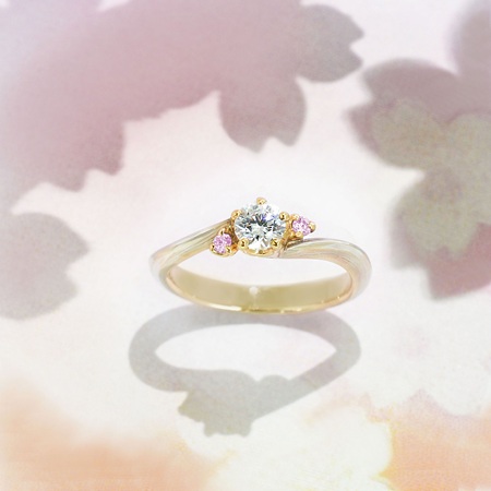 メインのダイヤモンドは【さくらダイヤモンド】をお選びいただき、いつでもお手元で満開の桜をご覧いただけるように。