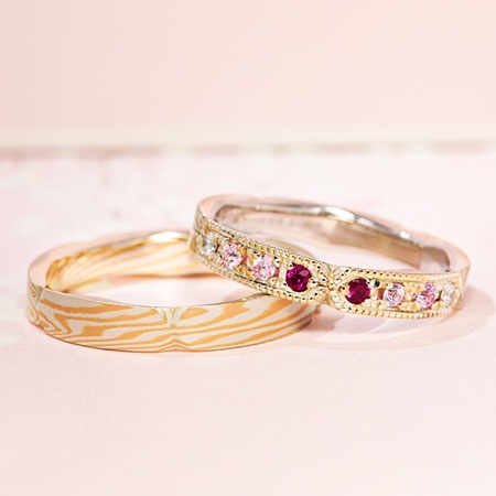出来あがりましたリングのお色味はお二人の雰囲気ぴったりの、