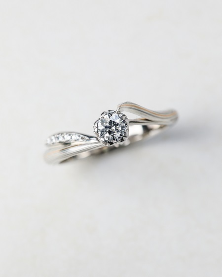 杢目金屋の婚約指輪の中でも、細部にまでこだわり抜いた特別なデザインでございます。