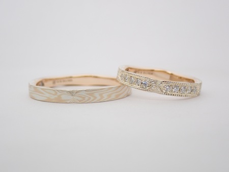 結婚指輪(マリッジリング)の木目金素材:ピンクゴールド×シルバー
