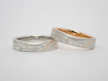 結婚指輪(マリッジリング)の木目素材:プラチナ×ピンクゴールド×シルバー
