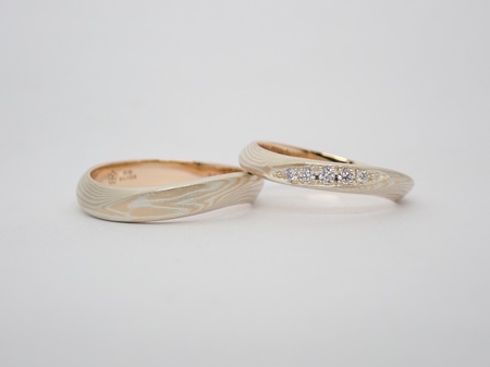 結婚指輪(マリッジリング)の木目素材:ホワイトゴールド×ピンクゴールド×シルバー