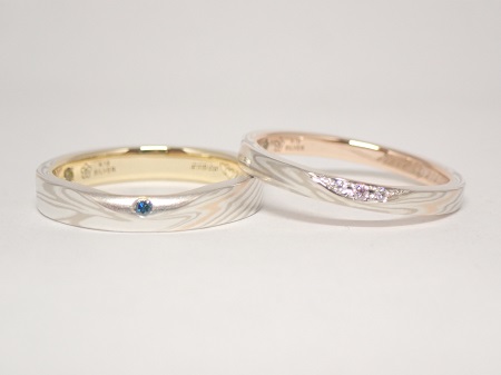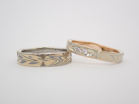 結婚指輪(マリッジリング)の木目金素材:ホワイトゴールド×ピンクゴールド×シルバー