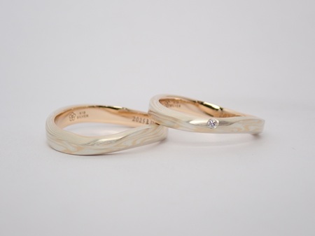 結婚指輪(マリッジリング)の木目金素材:ホワイトゴールド×ピンクゴールド×シルバー