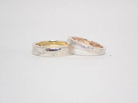 結婚指輪(マリッジリング)の木目金素材:ホワイトゴールド×ピンクゴールド×シルバー