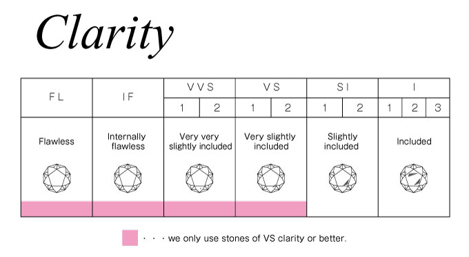 In order to fully express the beauty of Sakura petals in the diamonds, we only use stones of VS clarity or better.