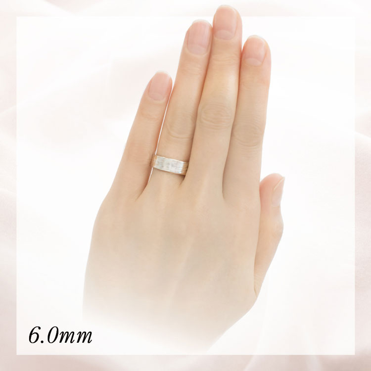 When the width of the band gets wider, the pattern shows up clearer. Check how each ring width looks like on the hand in the pictures below. The ring size of the model is JPN 8.0.