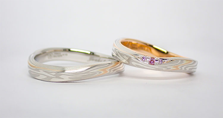 日本の伝統技術「木目金」でつくるふたりでわかちあう体験が永遠に絆を深める世界にひとつ結婚指輪です。