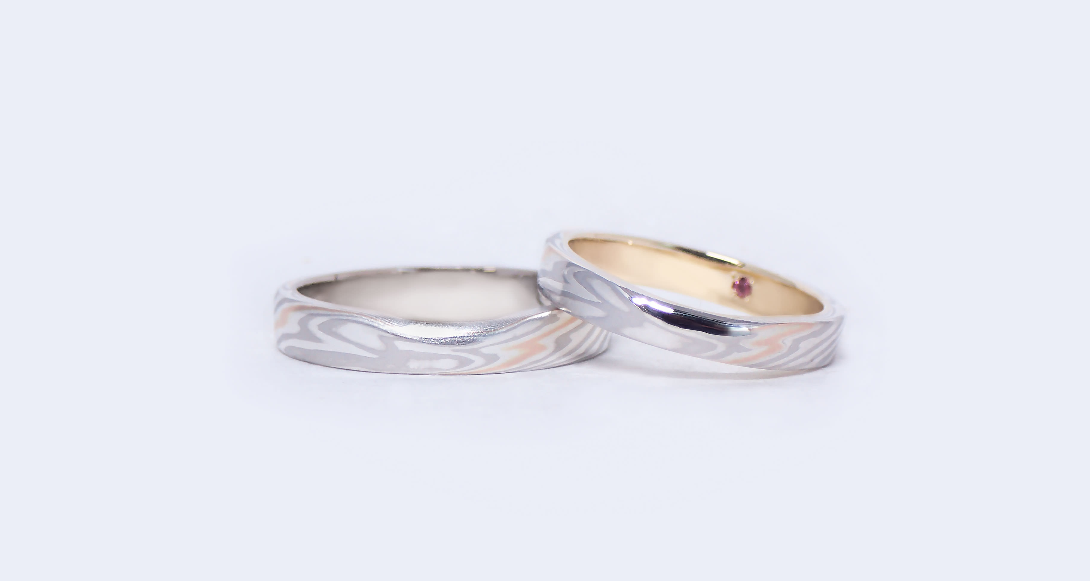 A. お好みの色合いで制作された木目金の板と鋳造で制作された内側のリングの2層構造で制作されるため「通常の指輪同等以上」の強度を有しています。