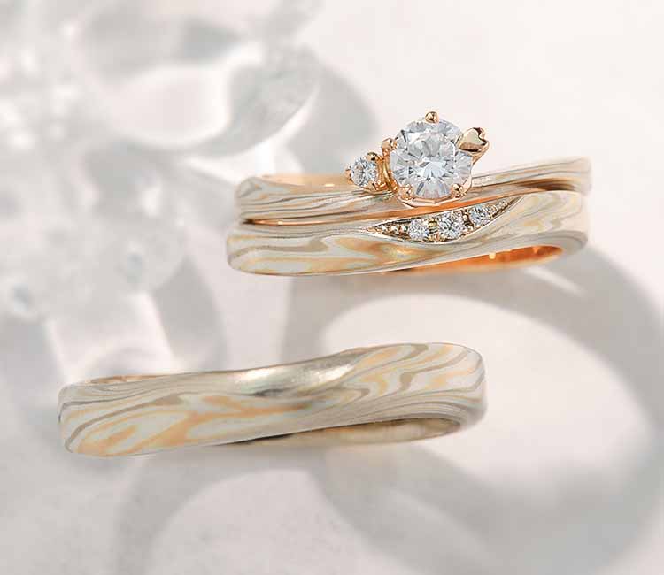 婚約指輪・結婚指輪を1枚の木目金の板から